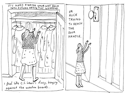 Love the cake mix hands. I spent the weekend as a teen taxi service, as well as toddler wrangling. Read two sentences of Gate at the Stairs.