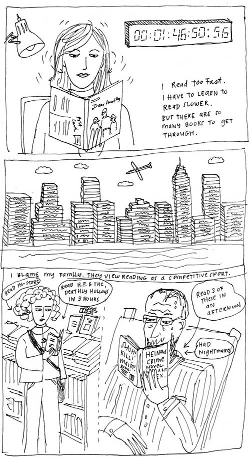 I read too fast too. Also eat faster than everyone else… embarrassing sometimes, useful other times.