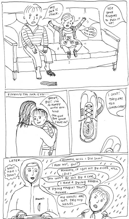 That’s wonderful Sarah, in an exhausting and highly accurate kind of way. That final to-and-fro dialogue reminds me of Lynda Barry’s cartoons… you know her?