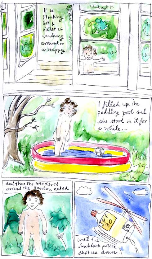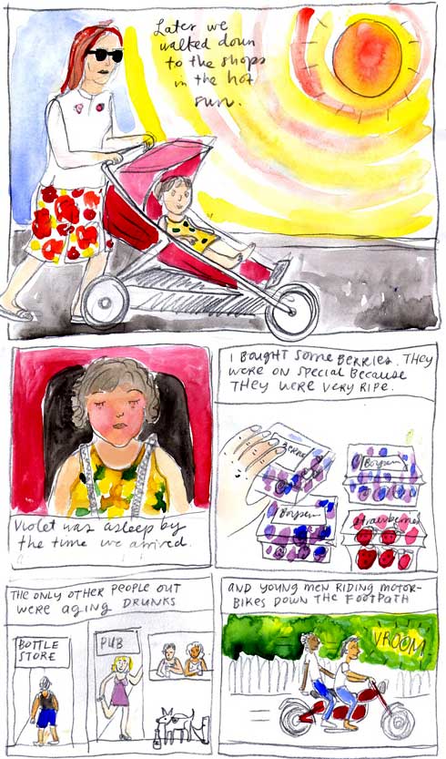 More experiments in style – it is, after all, the holiday season. Did I mention how great the Vanessa Davis book is? She reminded me of the wonderful and outrageously prolific Joann Sfar, who gets away with messy watercolour. I also got a cool children’s book out from the library, from another one of my favourites, Maira Kalman, who teamed up with Lemony Snicket. She’s not messy, more like skewed.