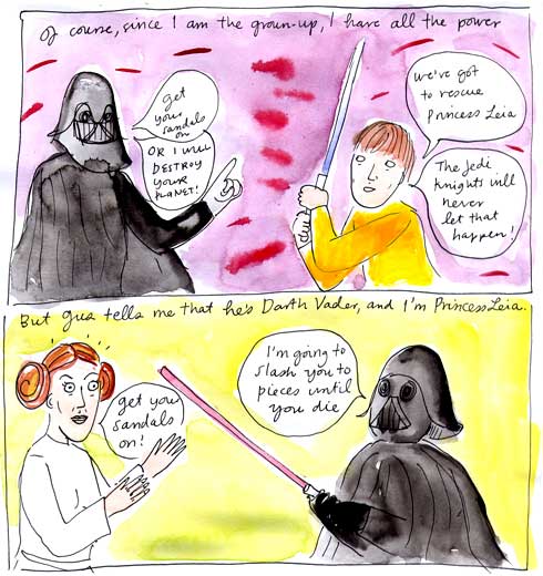 This is just what it’s like at our house – I’m trapped between a grown man who can recite Star Wars lines at will and a 20-month-old who acts like a storm trooper.