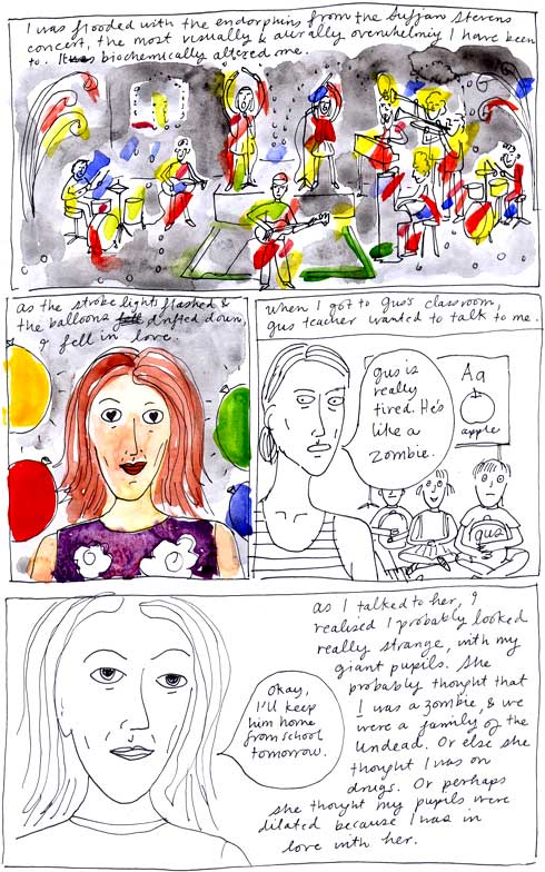 Someone in front of us at SS brought their very, very tiny baby. I couldn’t decide if they were brave or stupid, but in the end I just felt incredibly sorry for them – the baby started wailing as soon as the first song started and its mother (it’s always the mother, right?) disappeared into the night. Sigh. Hope your retinas (and zombie son) have recovered…