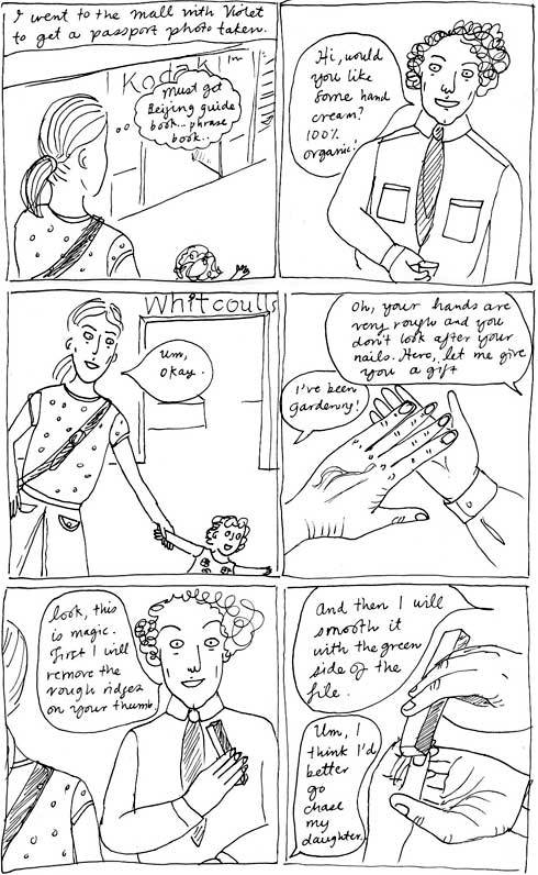 My daughter is older than yours, Sarah, and was fascinated by the Israeli cosmetics people. I ended up paying a couple of hundred dollars for nail creams and nail sanding blocks with silk on them and for facial cleansers and the sort of face oil that would change my life. Not usually a knock over in these situations, I was well and truly fleeced. Didn’t even have enough money to go to the $2 shop…