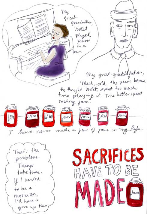 I love all of them – but this is one of my favourites – one of my mother-in-laws sang in pubs – the other Alia’s grandma – played accordian in her husband’s band – the Sandy Lane band – really the Samuel Levine band but that didn’t go over very well for Italian Weddings. neither ever made jam. I’ve started reading graphic novels because of you – there may be some fault implied here because I enjoy your blog a lot more than some of the GNs Music is much less seasonal than jam making – maybe the sacrifice should be vacuuming!