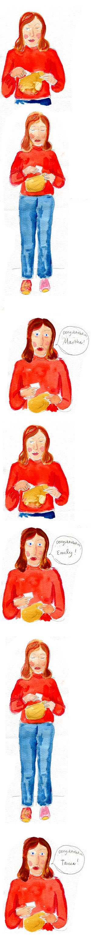 Congratulations to you lucky people who won a copy of my 218-page zine! That’s Martha, Tania and Emily, if you can’t read my messy handwriting. Talking of zines, there is a zine fest on in Auckland this weekend where you can buy lots of wonderful comics. Not mine, because I’ve been too busy to organise photocopying (I don’t work in an office, it makes things much more difficult.) If you are really cut up that you didn’t win, email me, sarah at poppyshock dot com, and I can sell you one at the bargain price of $15 plus postage.