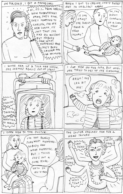 Thank you! Yeah, I did love that ‘my leg bit me’ line. It’s just what would occur to a child with limited experiences, and no knowledge of bones and veins and all those ER programmes.