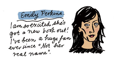 And last night I was very happy to escape the family and go to the launch of Emily Perkins’ novel ‘The Forrests’, which has gotten rave reviews so far. One in Metro, along with a fabulous author interview by Jolissa Gracewood. The cover photo is beautiful, like a still salvaged from a 16mm home movie reel. Her name is embossed in shiny green foil. The launch was fun, at Sunday Painters in Ponsonby, which has beautiful green walls embellished with vines, reminding me of Sarah’s Room by Doris Orgel. It was jam-packed with excited bookish people, fancying we might be on the brink of something big. Here is a snippet from this month’s comic, in which I tried to draw Emily: