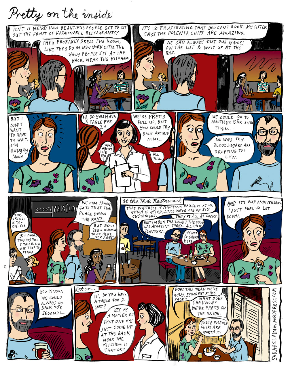 Today I am working on my comic for the June issue of Metro, but here is my comic for February. Actually, it might have worked for this month’s Metro, since they have the list of the best Auckland restaurants in the latest issue.Click on it to make it bigger because it’s a little small to read at this size.