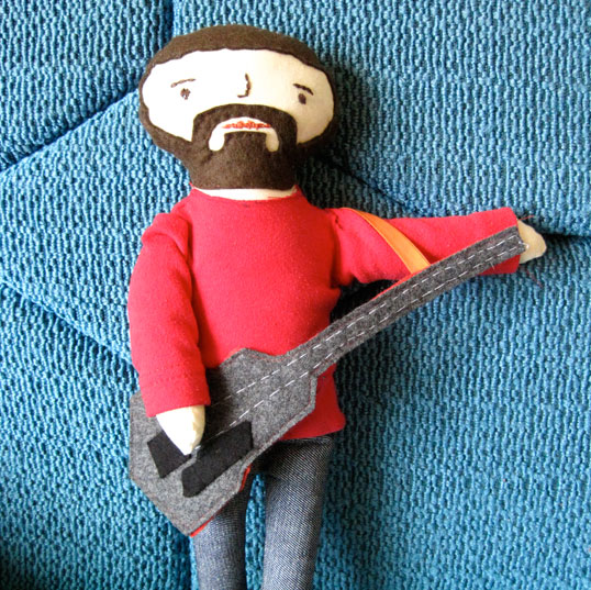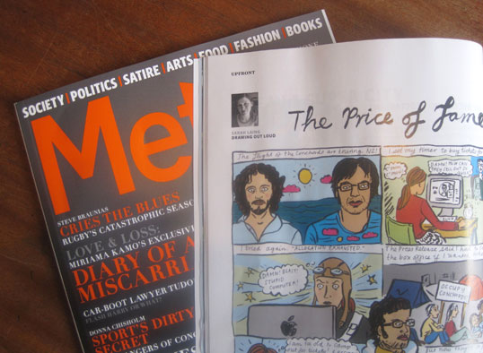 Yay! The latest Metro is out with my comic, in which I lament not getting tickets to see Flight of the Conchords at the Auckland Town Hall. I do have tickets for Vector Arena, but we’re right up the back, sob. We are taking the boys because they have always loved FOTC. When Gus was four, he loved Bret so much that I made him a Bret doll that he took to bed every night: