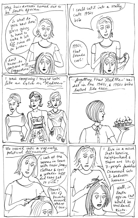 Hey Sarah, I love this comic, having just had my locks chopped off too! I’m trying all the old wives’ tales to try to get them to grow back faster…including catnip tea! I loved the Ramona books – and Henry and Ribsy and Ellen Tebbits. For some reason the bit where she pulls out the beetroot in the vacant lot on the way to school always sticks in my mind…