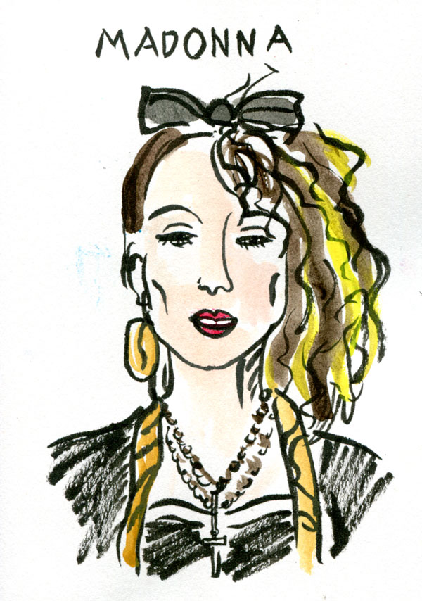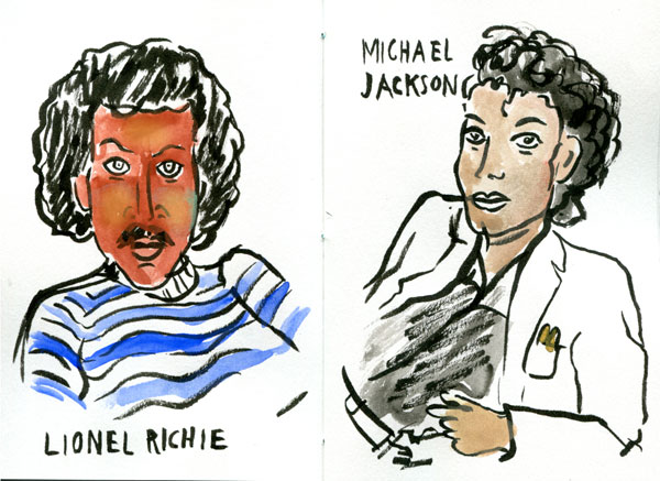 Below is my first book – the eighties pop icons. They had to be people that I liked, and I wasn’t very cool. And remember – it was ink straight to paper, which is why there are some wonky pop stars.