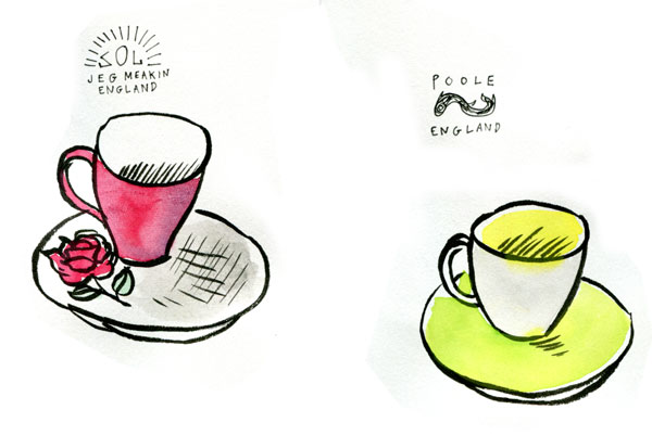 Lovely post. We have a huge collection of turquoise Poole thanks to my partner who has collected it for years (used to pay $2 for a dinner plate). We use it everyday, and it’s the best way to drink coffee or tea. I think if you can eat off lovely plates and drink from lovely cups it enriches your life greatly. Do you know Katherine Smyth’s work? She’s a friend of mine, and I adore drinking tea from her mugs. Anyway, I loved your drawings, delicate like china. Maybe I could buy a Poole drawing? for David. But it would have to be turquoise…