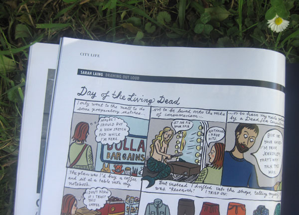 Look, the latest Metro is out, with my comic in it! And there’s also a great editorial by Simon Wilson about ‘the serendipity – the unplanned delight – that a good bookshop represents.’ He, like many of us, is worried about what ebooks and Amazon might do to that lovely relationship you have with your local bookseller. And, as usual, there are lots of excellent book reviews, and a particularly timely one (for me, anyway) on Caitlin Moran, with the great line: ‘Moran…Feels passionately that when it comes to pubic hair, a bush in the hand is worth two Brazilian birds.’ That Jolisa Gracewood is so clever.