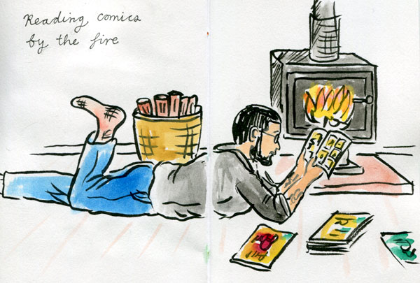 And in other news, I am STILL working with my editor on my book, and my latest Metro comic is now on the newsstands – the one with Morrissey in it! Of course my fantasy is that Morrissey will see it and get in touch and I will invite him over for dinner. Then he’ll be terribly disappointed in how dull-witted I am, and I will be taken aback by how different he is from the Morrissey I constructed in my head… but perhaps we’ll get on famously and he’ll invite me to his apartment in Rome and lend me his vespa so I can go touring the country side with my sketchbook.