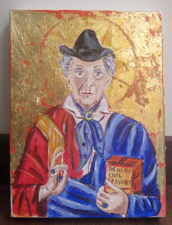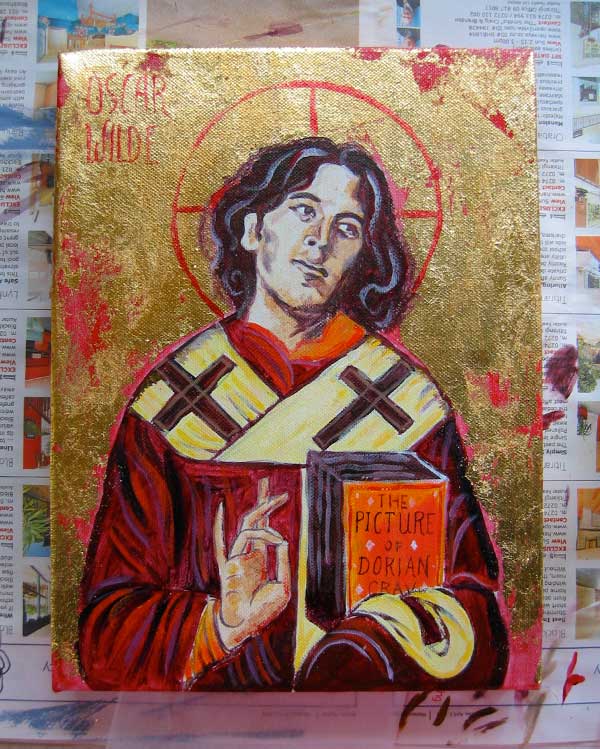 This is to go with the Oscar Wilde icon that I made him a few years ago. He tells me my style has changed – and he’s right, the face is a bit more delicate, less shadowy. Quentin is very pale and lilac-y. Perhaps I should do it again.