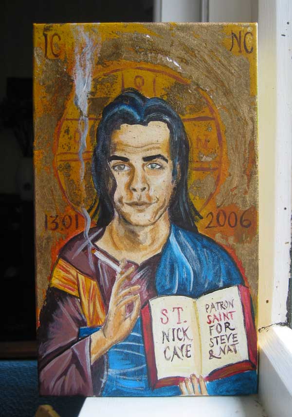 Helen wanted hers because she had traveled to Greece and she’d seen the Nick Cave icon I’d made for my friends Steve and Nat’s wedding: