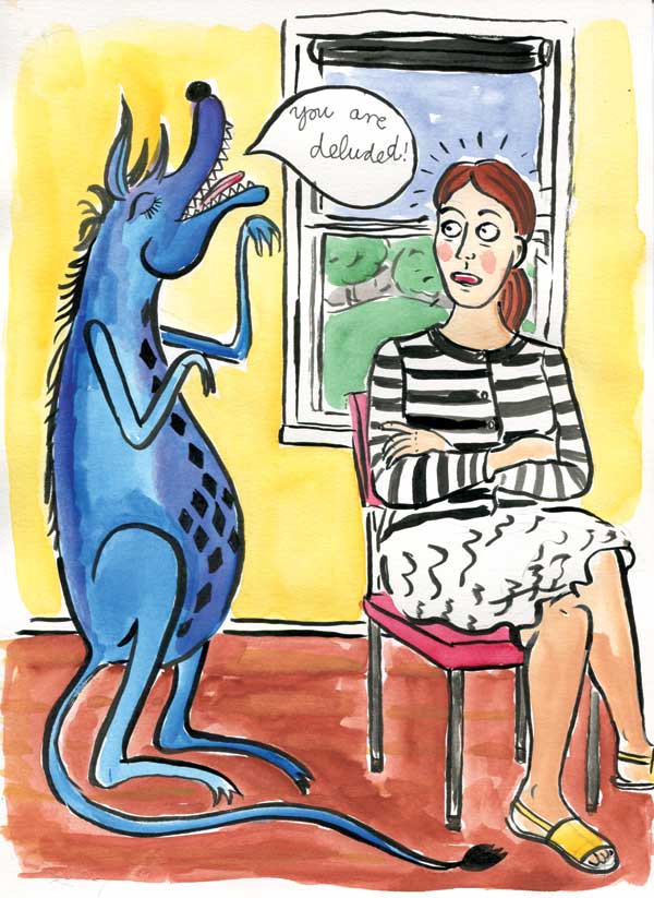 Fantastic! I love the beastie, at least – I love your rendition of the beastie. I don’t love the fact that she is at my place right now, leaning over my shoulder as I try to write. I think your illustration might help me send her on her way though, so thank you!