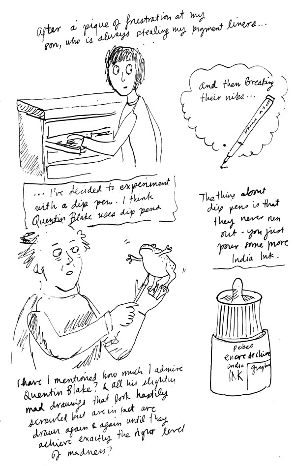 Quentin Blake’s illustrations are wonderful. So much energy in his lines. Have fun with your dip pen.