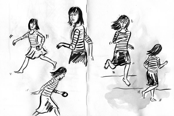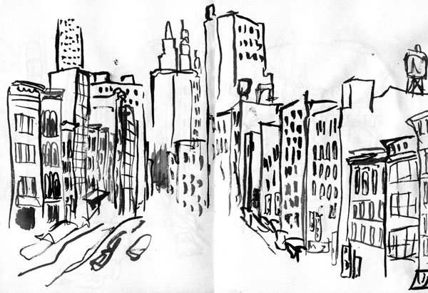 sketch003I really love the looseness that comes from drawing in a sketch book. As soon as you put something down on good paper, the lines become rigid with expectation. But I tried to trick myself, by buying not-so-good paper that was the same texture as my dollar shop sketch book paper.