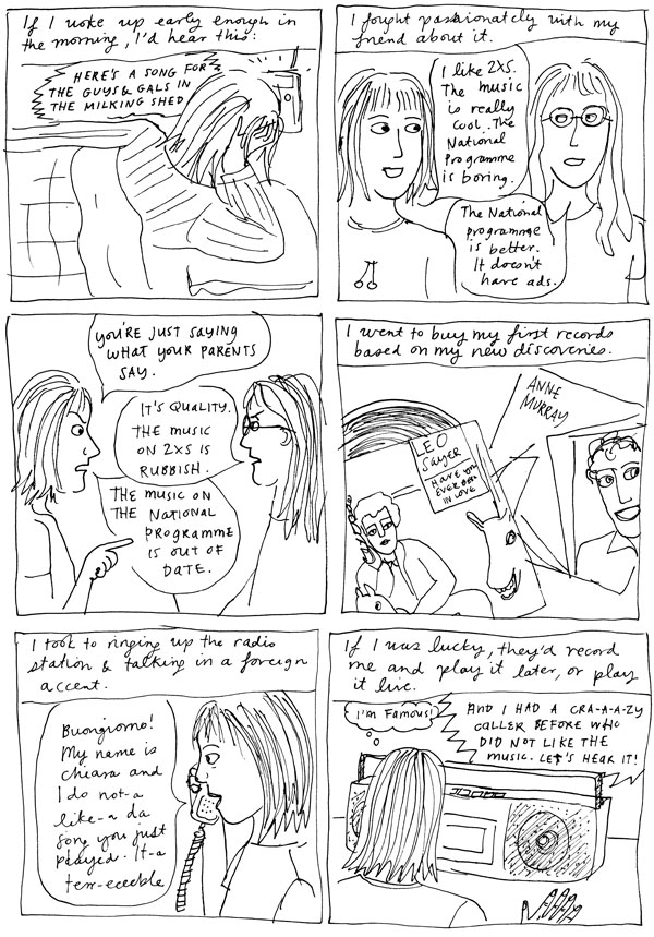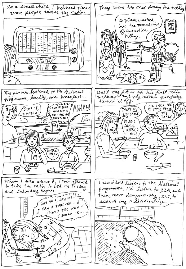 Drawing this comic made me feel really old, or else very aware of how quickly technology has evolved over my lifetime. When I first started listening in the 80s, we didn’t even have FM. And I remember when walkmans first arrived. I also just finished a book by Claire Messud, called The Woman Upstairs, in which a 37-year-old is described as middle-aged. That made me feel old too.