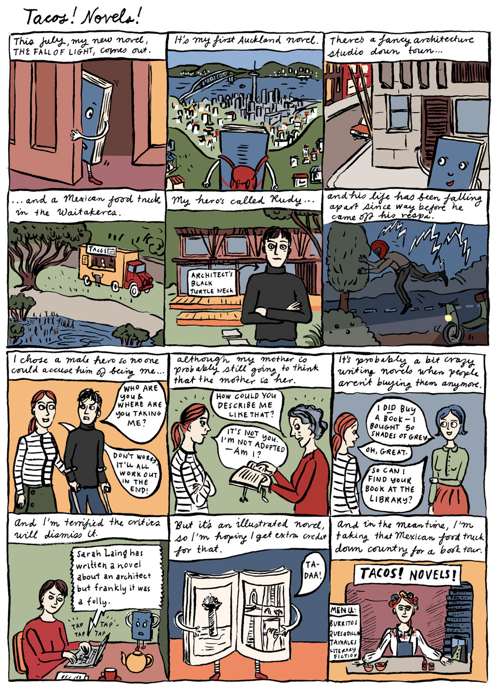 The latest Metro magazine is out, and I have a comic in it about biking. In the mean time, here’s my comic from the late June/July issue. I wrote it pre-book launch and you can see I was expressing my terror of reviews. But as it turned out nobody said it was a folly, nor did I get extra credit for the pictures. Click on it if you want to see it enlarged!