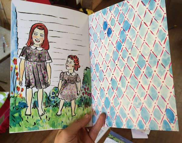 I’ve drawn my sister looking up adoringly at me; in reality she looks a little like she wants to rip my throat out. We’re very good friends now but I was an evil older sister back then. Alluring and violent.