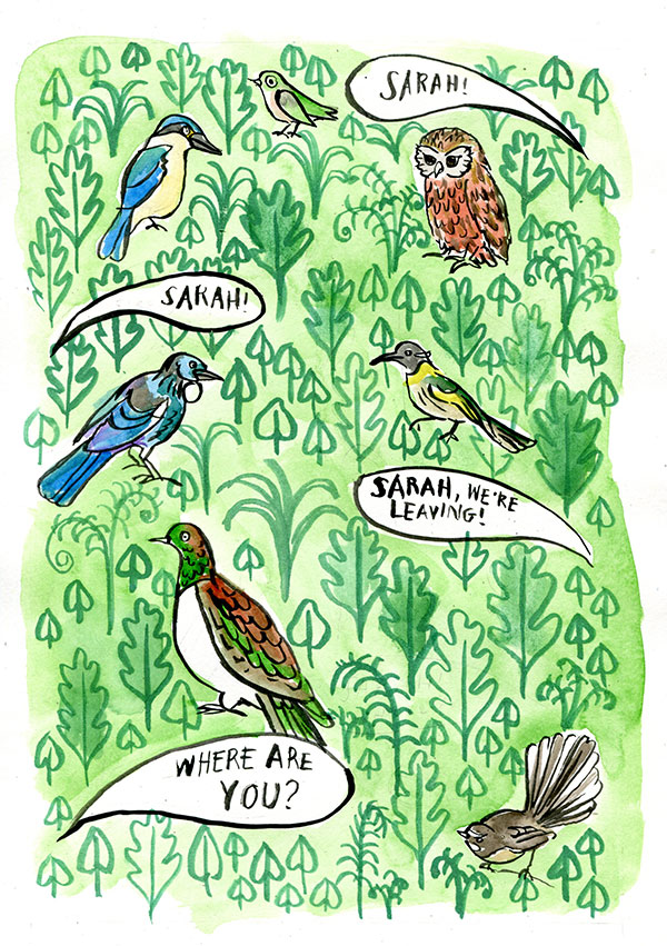 This is a page I’ve been playing around with from my Katherine Mansfield project. I was having fun going through my beautiful edition of Buller’s Birds, and thinking of Richard Bird in the Bush.