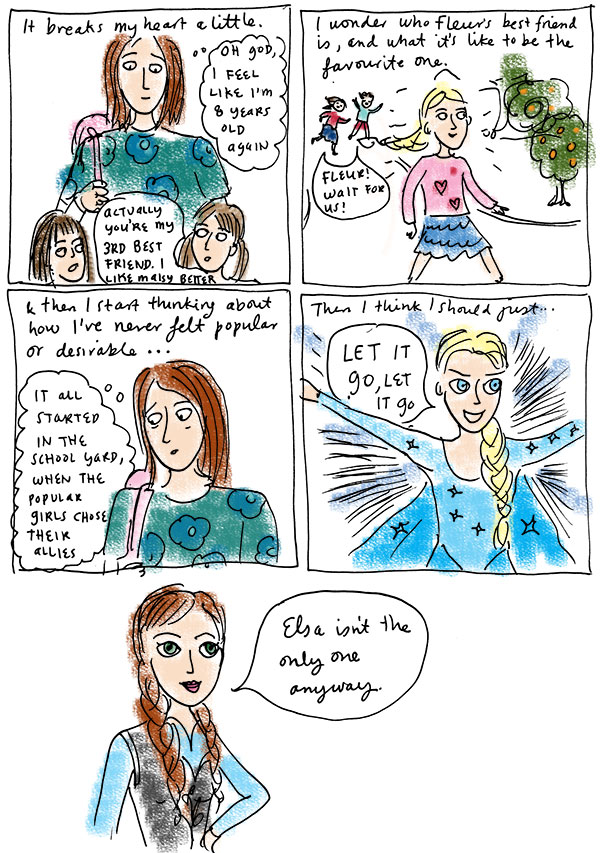 It is scary the way kids are so into it and the blonde bombshell moment in which Elsa embraces her powers and suddenly becomes the foxy ice maiden is truly terrible (my husband says they put that part in the movie to keep all the dads happy). I have waged a long campaign to boost Anna’s popularity (‘Anna is clever and brave AND she has shiny brown hair like you and Mummy’) but it’s a hard sell. Still, at least it’s not Barbie, right?