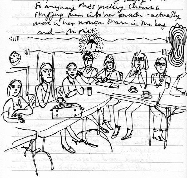 This is a sketch I made of a creative writing class I took last year – I found it in my teaching notebook, which is completely filled up. Which means that I have done quite a lot of teaching lately.