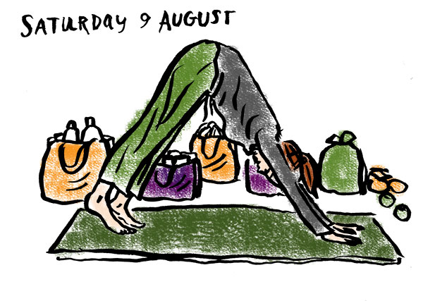 After yoga I go supermarket shopping. I do it as quickly as possible, drafting the week’s menu as I fling cans and loaves into my trolley. Today the checkout operator thanked me for giving him the heavy things first because it made it easier to pack my trolley, and I felt pleased with myself to think that I’d made his life easier, when he had to work inside on such a sunny day.